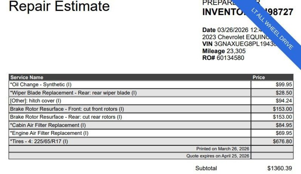 Royal Motor Company is proud to offer this beautiful 2023 Chevrolet Equinox an absolutely attractive-looking SUV with the following Features: Confidence & Convenience Package, Driver Confidence II Package (Front & Rear Park Assist), Driver Convenience Package (Dual-Zone Automatic Climate Control, Heated Driver & Front Passenger Seats, Rear Power Liftgate, Remote Start, and Wrapped Steering Wheel), Interior Protection Package (LPO) (All-Weather Floor Mats and Cargo Mat), Preferred Equipment Group 1LT, Side Blind Zone & Rear Cross Traffic (Lane Change Alert w/Side Blind Zone Alert and Rear Cross Traffic Alert), 17 Aluminum Wheels, 2 Rear USB Charging-Only Ports, 2 USB Ports & Auxiliary Input Jack, 2-Way Power Driver Lumbar Control Seat Adjuster, 3.87 Final Drive Axle Ratio, 4-Wheel Disc Brakes, 6 Speakers, 6-Speaker Audio System Feature, ABS brakes, Air Conditioning, Alloy wheels, AM/FM radio: SiriusXM, Auto High-beam Headlights, Bluetooth® For Phone, Brake assist, Bumpers: body-color, Compass, Custom Molded Front & Rear Splash Guards (LPO), Delay-off headlights, Driver 8-Way Power Seat Adjuster, Driver door bin, Driver vanity mirror, Dual front impact airbags, Dual front side impact airbags, Electronic Stability Control, Emergency communication system: OnStar and Chevrolet connected services capable, Four wheel independent suspension, Front & Rear Black Bowtie Emblems (LPO), Front anti-roll bar, Front Bucket Seats, Front Center Armrest, Front Passenger 4-Way Manual Seat Adjuster, Front reading lights, Fully automatic headlights, Heated door mirrors, Illuminated entry, Low tire pressure warning, Occupant sensing airbag, Outside temperature display, Overhead airbag, Overhead console, Panic alarm, Passenger door bin, Passenger vanity mirror, Power door mirrors, Power driver seat, Power steering, Power windows, Premium audio system: Chevrolet Infotainment 3, Premium Cloth Seat Trim, Radio data system, Radio: Chevrolet Infotainment 3 System w/AM/FM, Rear anti-roll bar, Rear reading lights, Rear seat center armrest, Rear window defroster, Rear window wiper, Remote keyless entry, Security system, SiriusXM Radio, Speed control, Speed-sensing steering, Split folding rear seat, Spoiler, Steering wheel mounted audio controls, Tachometer, Telescoping steering wheel, Tilt steering wheel, Traction control, Trip computer, Variably intermittent wipers, and Wireless Apple CarPlay/Wireless Android Auto.