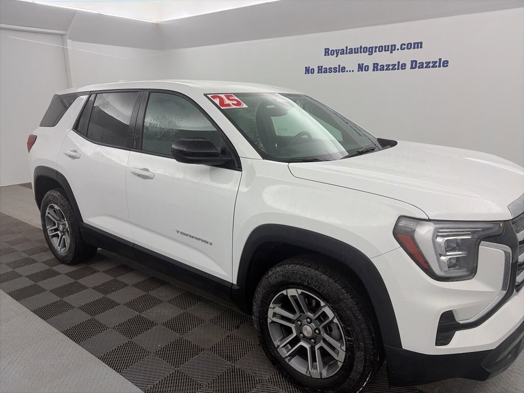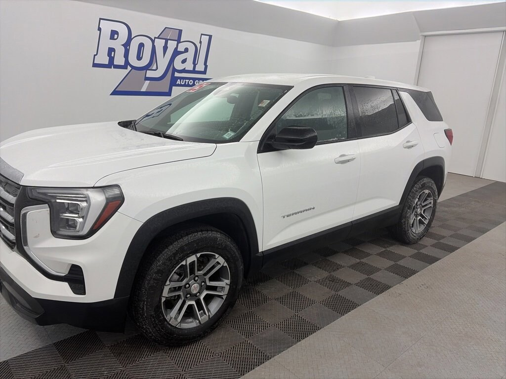 Royal Motor Company is proud to offer this attractive 2025 GMC Terrain a truly stunning SUV with the following Features: License Plate Front Mounting Package, Preferred Equipment Group 3SB, 3.47 Final Drive Axle Ratio, 4-Wheel Disc Brakes, 6 Speakers, 6-Speaker Audio System Feature, ABS brakes, Air Conditioning, Alloy wheels, AM/FM radio: SiriusXM, Auto High-beam Headlights, Automatic temperature control, Brake assist, Bumpers: body-color, Compass, Delay-off headlights, Driver & Front Passenger Heated Seats, Driver 6-Way Manual Seat Adjuster, Driver door bin, Driver vanity mirror, Dual front impact airbags, Dual front side impact airbags, Electronic Stability Control, Emergency communication system: OnStar and GMC connected services capable, Four wheel independent suspension, Front anti-roll bar, Front Bucket Seats, Front Center Armrest, Front fog lights, Front Passenger 4-Way Manual Seat Adjuster, Front reading lights, Fully automatic headlights, Garage door transmitter, Heated door mirrors, Heated front seats, Heated steering wheel, Illuminated entry, Low tire pressure warning, Memory seat, Occupant sensing airbag, Outside temperature display, Overhead airbag, Panic alarm, Passenger door bin, Passenger vanity mirror, Power door mirrors, Power steering, Power windows, Premium Cloth Seat Trim, Radio data system, Radio: Premium GMC Infotainment System, Rear anti-roll bar, Rear seat center armrest, Rear window defroster, Rear window wiper, Remote keyless entry, Security system, SiriusXM Trial Subscription, Speed control, Speed-sensing steering, Split folding rear seat, Spoiler, Steering wheel mounted audio controls, Tachometer, Telescoping steering wheel, Tilt steering wheel, Traction control, Trip computer, Variably intermittent wipers, Wheels: 17 Grazen Metallic Machined Aluminum, and Wireless Apple CarPlay/Wireless Android Auto.