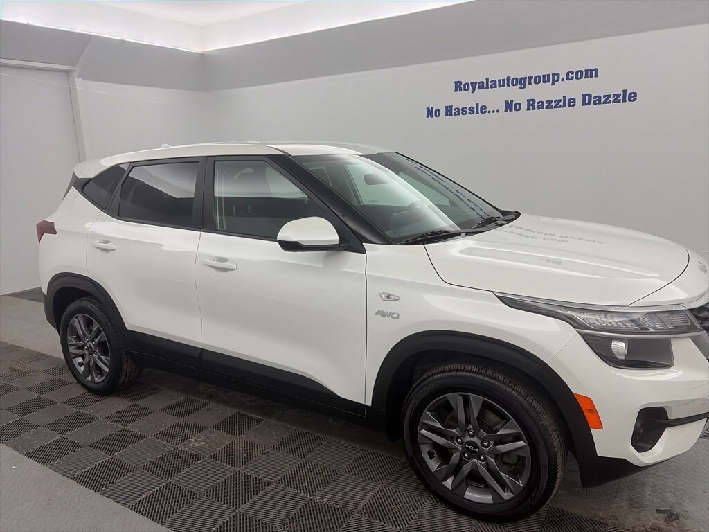Royal Motor Company is proud to offer this superb-looking 2023 Kia Seltos a positively great-looking SUV with the following Features: 4-Wheel Disc Brakes, 6 Speakers, 6.052 Axle Ratio, ABS brakes, Air Conditioning, Alloy wheels, AM/FM radio, Apple CarPlay & Android Auto, Auto High-beam Headlights, Brake assist, Bumpers: body-color, Cargo Net (Floor), Cargo Tray, Cloth Seat Trim, Delay-off headlights, Driver door bin, Driver vanity mirror, Dual front impact airbags, Dual front side impact airbags, Electronic Stability Control, Exterior Parking Camera Rear, Fog Light Kit, Four wheel independent suspension, Front anti-roll bar, Front Bucket Seats, Front Center Armrest, Front reading lights, Fully automatic headlights, Illuminated entry, Illuminated Scuff Plate, Low tire pressure warning, Mud Guards, Occupant sensing airbag, Outside temperature display, Overhead airbag, Overhead console, Panic alarm, Passenger door bin, Passenger vanity mirror, Power door mirrors, Power steering, Power windows, Radio: AM/FM/MP3 Display Audio, Rear window defroster, Rear window wiper, Remote keyless entry, Security system, Speed control, Speed-sensing steering, Split folding rear seat, Spoiler, Steering wheel mounted audio controls, Tachometer, Telescoping steering wheel, Tilt steering wheel, Traction control, Trip computer, Variably intermittent wipers, Wheel Locks, and Wheels: 17 Alloy w/Dark Gray Finish.