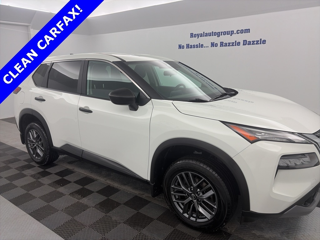 Royal Nissan Subaru is proud to offer this great 2023 Nissan Rogue an absolutely attractive SUV with the following Features: 17" Aluminum Alloy Wheels, 4 Speakers, 4-Wheel Disc Brakes, 5.604 Axle Ratio, ABS brakes, Air Conditioning, Alloy wheels, AM/FM Radio, AM/FM radio: SiriusXM, Auto High-beam Headlights, Black Splash Guards (Set of 4), Blind Spot Warning, Brake assist, Bumpers: body-color, Cloth Seat Trim, Delay-off headlights, Driver door bin, Driver vanity mirror, Dual front impact airbags, Dual front side impact airbags, Electronic Stability Control, First Aid Kit, Floor Mats w/1-Piece Cargo Area Protector, Four wheel independent suspension, Front anti-roll bar, Front Bucket Seats, Front Center Armrest, Front reading lights, Fully automatic headlights, Illuminated entry, Knee airbag, Low tire pressure warning, NissanConnect featuring Apple CarPlay and Android Auto, Occupant sensing airbag, Outside temperature display, Overhead airbag, Overhead console, Panic alarm, Passenger door bin, Passenger vanity mirror, Power door mirrors, Power steering, Power windows, Radio data system, Rear anti-roll bar, Rear Parking Sensors, Rear seat center armrest, Rear side impact airbag, Rear window defroster, Rear window wiper, Remote keyless entry, Speed control, Speed-Sensitive Wipers, Split folding rear seat, Spoiler, Steering wheel mounted audio controls, Tachometer, Telescoping steering wheel, Tilt steering wheel, Traction control, Trip computer, and Variably intermittent wipers.
