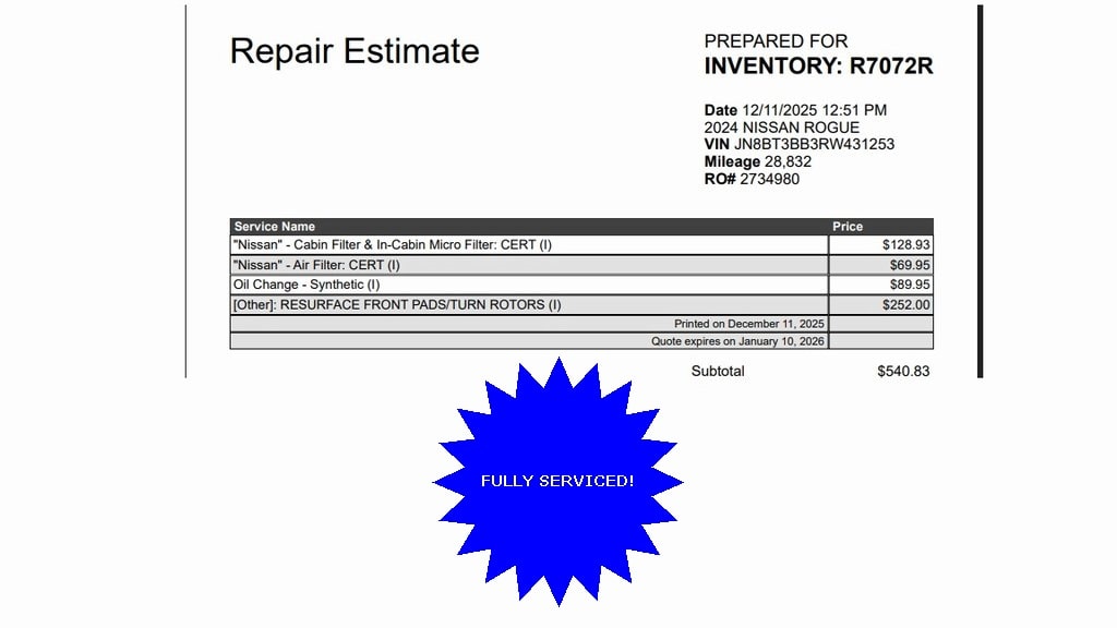 * 7 Year/100,000 Mile Limited Warranty, 24/7 Hour Roadside Assistance, Carfax Vehicle History Report, Plus 1 Year Pre-Paid Maintenance Included. Gas Powered Nissan Models Only.