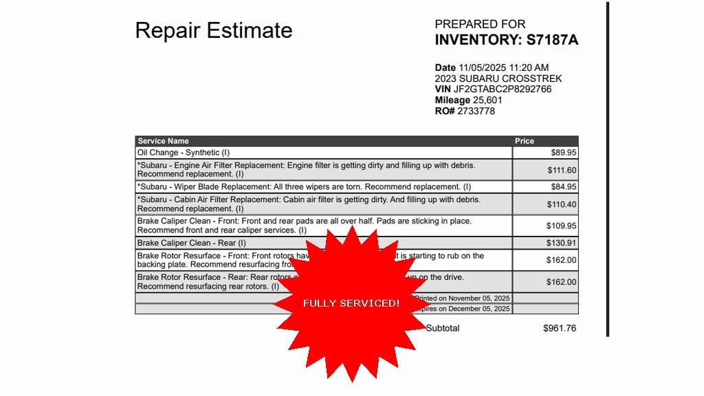Royal Nissan Subaru is proud to offer this gorgeous-looking 2023 Subaru Crosstrek a truly beautiful-looking SUV with the following Features: Standard Model (CVT) (EyeSight System, High Grade Combination Meter w/Color LCD Display, Overhead Console Shower Light, Rear Seat Reminder, and Tire Pressure Monitoring System), 3.90 Axle Ratio, 4 Speakers, 4-Wheel Disc Brakes, ABS brakes, Air Conditioning, All-Weather Floor Liners, Alloy wheels, AM/FM radio, Anti-whiplash front head restraints, Auto-Dimming Mirror w/Compass & HomeLink, Automatic temperature control, Brake assist, Bumpers: body-color, Cargo Net, Cargo Tray, Cloth Upholstery, Driver door bin, Driver vanity mirror, Dual front impact airbags, Dual front side impact airbags, Electronic Stability Control, Exterior Parking Camera Rear, Four wheel independent suspension, Front anti-roll bar, Front Bucket Seats, Front Center Armrest, Front reading lights, Illuminated entry, Knee airbag, Low tire pressure warning, Map & Dome Lights LED Upgrade, Occupant sensing airbag, Outside temperature display, Overhead airbag, Overhead console, Panic alarm, Passenger door bin, Passenger vanity mirror, Power door mirrors, Power steering, Power windows, Radio data system, Radio: Subaru STARLINK 6.5" Multimedia System, Rear anti-roll bar, Rear Bumper Cover, Rear Seatback Protector, Rear window defroster, Rear window wiper, Remote Engine Starter - Key Start, Remote keyless entry, Security system, Speed control, Speed-sensing steering, Splash Guards, Split folding rear seat, Spoiler, STARLINK/Apple CarPlay/Android Auto, Steering wheel mounted audio controls, Tachometer, Telescoping steering wheel, Tilt steering wheel, Traction control, Trip computer, Variably intermittent wipers, and Wheels: 17" x 7.0J Alum Alloy Blk w/Machine Finish.