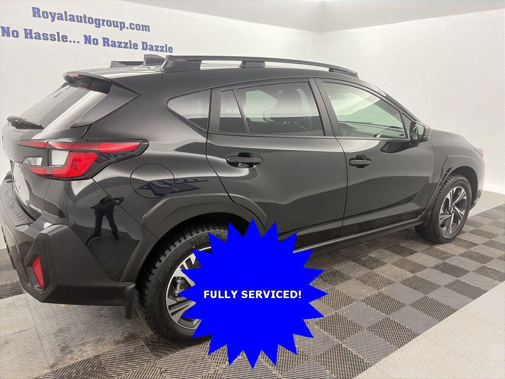 Royal Nissan Subaru is proud to offer this attractive-looking 2025 Subaru Crosstrek an absolutely stunning SUV with the following Features: Popular Package #3 (All-Weather Floor Liners, Auto-Dimming Exterior Mirror w/Approach Light, Auto-Dimming Mirror w/Compass & HomeLink, LED Upgrade, Rear Bumper Cover, and Rear Seatback Protector), Standard Model, 4-Wheel Disc Brakes, 6 Speakers, ABS brakes, Air Conditioning, Alloy wheels, AM/FM radio: SiriusXM, Anti-whiplash front head restraints, Auto High-beam Headlights, Automatic temperature control, Brake assist, Bumpers: body-color, Cloth Upholstery, Driver door bin, Driver vanity mirror, Dual front impact airbags, Dual front side impact airbags, Electronic Stability Control, Emergency communication system, Exterior Parking Camera Rear, Four wheel independent suspension, Front anti-roll bar, Front Bucket Seats, Front Center Armrest, Front dual zone A/C, Front fog lights, Front reading lights, Fully automatic headlights, Illuminated entry, Knee airbag, Low tire pressure warning, Occupant sensing airbag, Outside temperature display, Overhead airbag, Overhead console, Panic alarm, Passenger door bin, Passenger vanity mirror, Power door mirrors, Power steering, Power windows, Radio data system, Radio: Subaru 11.6" Multimedia Plus System, Rear anti-roll bar, Rear seat center armrest, Rear window defroster, Rear window wiper, Remote keyless entry, Security system, Speed control, Speed-sensing steering, Splash Guards, Split folding rear seat, Spoiler, Steering wheel mounted audio controls, Tachometer, Telescoping steering wheel, Tilt steering wheel, Traction control, Trip computer, Turn signal indicator mirrors, Variably intermittent wipers, and Wheels: 17" x 7.0" J Machine Finish Aluminum-Alloy.