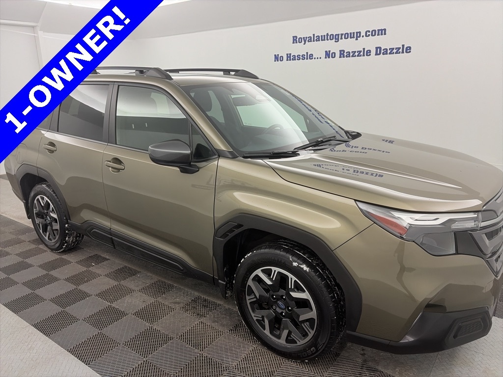 Royal Nissan Subaru is proud to offer this superb-looking 2025 Subaru Forester an absolutely good-looking SUV with the following Features: Power Rear Gate & Blind Spot Detection w/RCTA (Automatic Emergency Steering, Blind-Spot Detection (BSD)/RCTA System, and Power Rear Gate), 4-Wheel Disc Brakes, 6 Speakers, ABS brakes, Air Conditioning, All-Weather Floor Liners, Alloy wheels, AM/FM radio: SiriusXM with 360L, Anti-whiplash front head restraints, Auto High-beam Headlights, Auto-Dimming Mirror w/Compass & HomeLink, Automatic temperature control, Brake assist, Bumpers: body-color, Cargo Net, Cargo Tray, Driver door bin, Driver vanity mirror, Dual front impact airbags, Dual front side impact airbags, Electronic Stability Control, Emergency communication system: MySubaru Safety (3-year free trial), Exterior Parking Camera Rear, Four wheel independent suspension, Front anti-roll bar, Front Bucket Seats, Front Center Armrest, Front dual zone A/C, Front fog lights, Front reading lights, Fully automatic headlights, Heated door mirrors, Heated Front Bucket Seats, Heated front seats, Illuminated entry, Knee airbag, Leather steering wheel, Low tire pressure warning, Occupant sensing airbag, Outside temperature display, Overhead airbag, Overhead console, Panic alarm, Passenger door bin, Passenger vanity mirror, Power door mirrors, Power driver seat, Power moonroof: Panoramic, Power steering, Power windows, Premium Textured Cloth Upholstery, Radio data system, Radio: Subaru 11.6" Multimedia Plus System, Rear anti-roll bar, Rear Bumper Cover, Rear seat center armrest, Rear Seatback Protector, Rear window defroster, Rear window wiper, Remote keyless entry, Security system, Speed control, Speed-sensing steering, Splash Guards, Split folding rear seat, Spoiler, Steering wheel mounted audio controls, Tachometer, Telescoping steering wheel, Tilt steering wheel, Traction control, Trip computer, Variably intermittent wipers, Wheel Locks - Alloy, and Wheels: 17" x 7.0 J Dark Metallic Aluminum-Alloy.